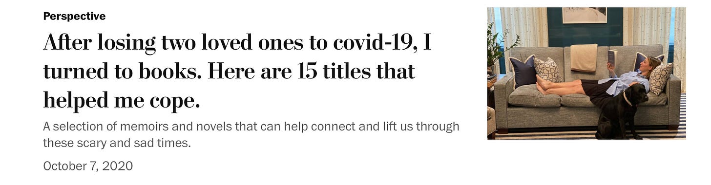 I got to know the team at the Washington Post almost six years ago when I started writing for them just before Covid — literally my first piece came out March 13, 2020. I then wrote regularly for them during lockdown. It started with a profile Nora Krug assigned me of Greta Thunberg’s family memoir and led to many articles like children’s books that kept my kids engaged during quarantine, books for overwhelmed moms during lockdown, workbooks for Covid kids, books for a Covid Thanksgiving, books for dog lovers, books for Mother’s Day, and ultimately books that helped me cope with Covid loss after my husband Kyle lost his mother and grandmother.