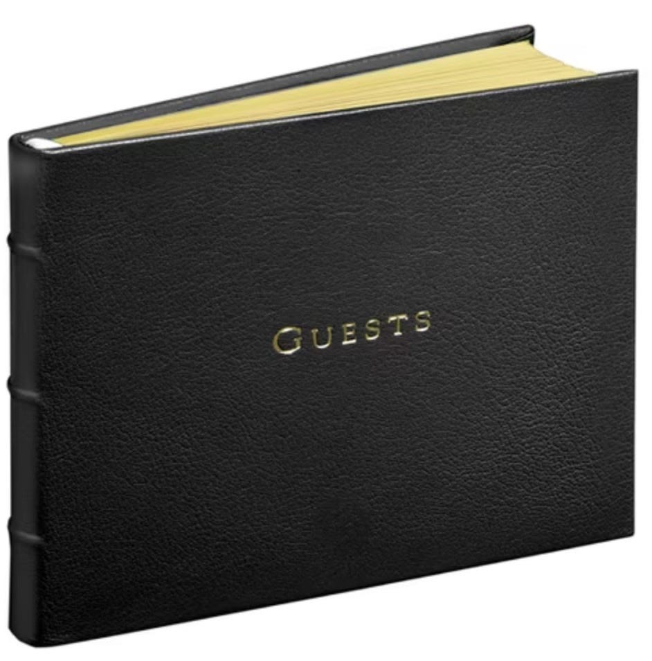 Order this one from Scully & Scully for visitors to sign here. Other Considerations:
