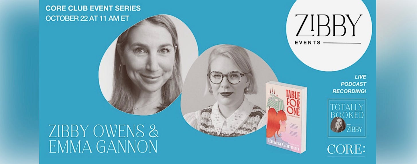NYC. Wednesday, October 22nd from 11 am - 12:30 pm. Core Club Series: Emma Gannon live podcast in conversation about her book Table for One. Reply here.