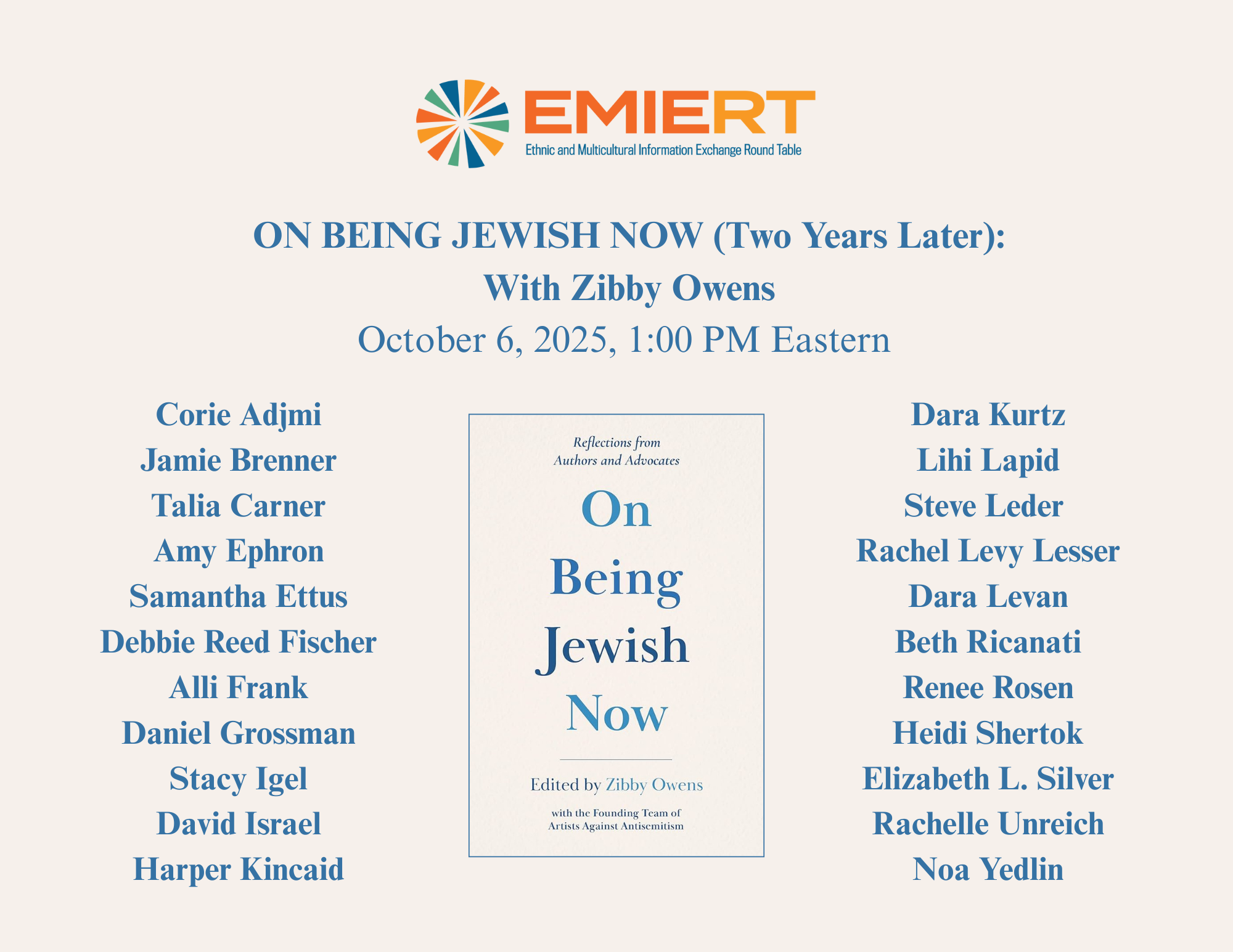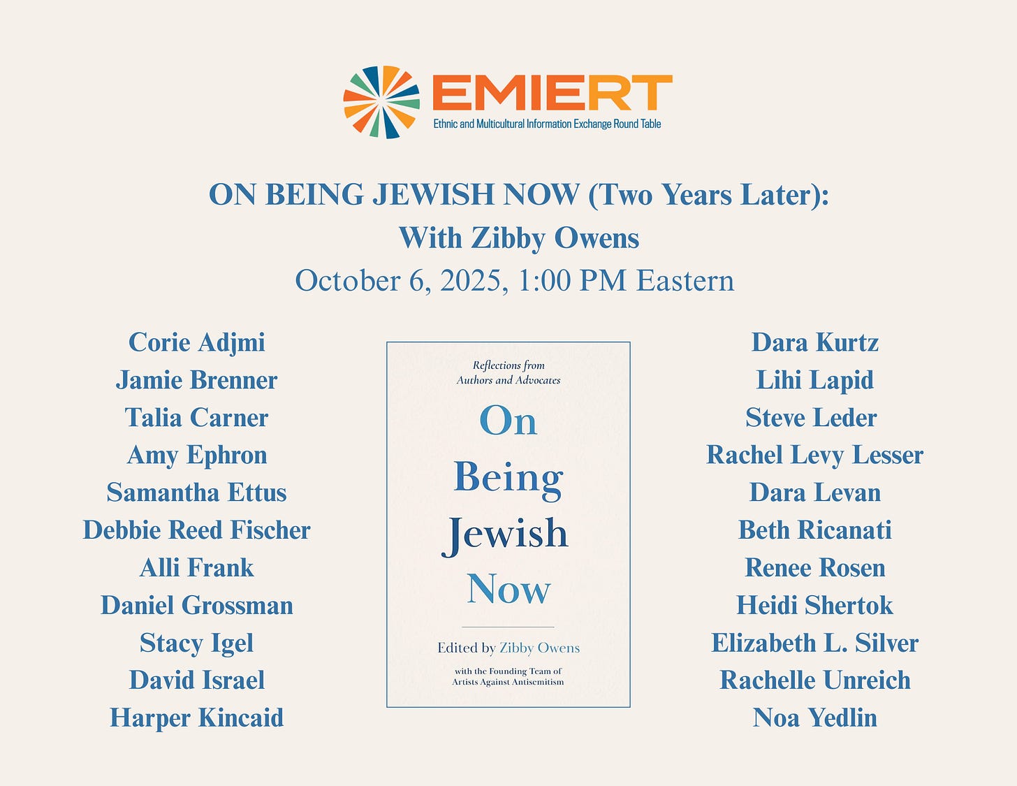 Monday, October 6th at 1 pm ET: ALA (American Library Association) EMIERT event for On Being Jewish Now with multiple contributors. Tickets here.