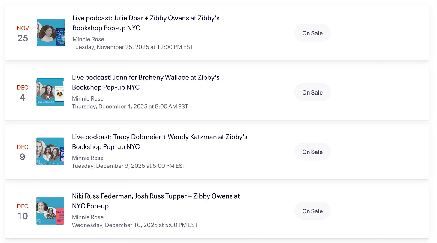 Have a great Thanksgiving if you don’t open my next email (haha!). I’m so grateful for YOU. If you love my content, upgrade to a paid subscription or gift one to a friend. You’ll get my next collection of essays as a gift published only for you! And you’ll support the work we’re doing at Zibby Media to uplift, connect, and inspire.