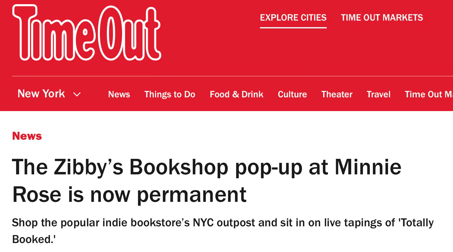 Exciting news! My pop-up bookshop in NYC inside the Minnie Rose boutique on 73rd and Lex is now permanent! Thanks to Time Out for running a lovely article about it (and me!). We have frequent author events and a small, mighty selection of books I’ve handpicked. If you’re in NYC or visiting, please come by and attend at event! Here’s the complete listing. Read the books!