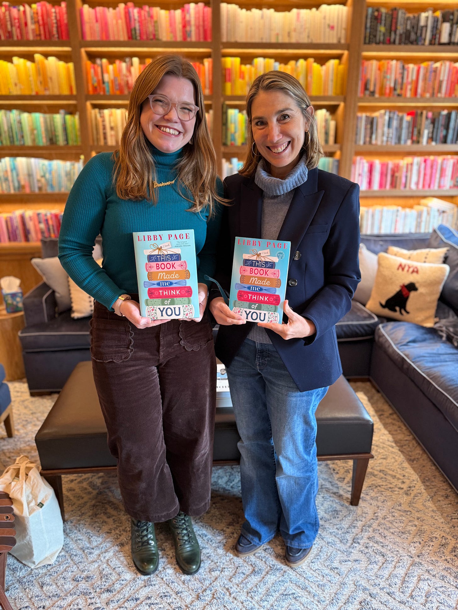 This Book Made Me Think of You, an instant USA Today Bestseller by top UK author Libby Page, is an ode to bookstores, an ode to love, and an ode to the power of books to get us through anything. Libby came to my home and stayed for lunch when she was in town from the U.K. We could’ve talked about books forever. I don’t know what was cuter — the book or the purse she brought with her shaped like the front of an old-fashioned bookstore.